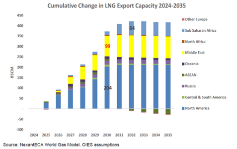 Die kumulative, zusätzliche weltweite Liquefaction-Kapazität bis 2035 ist in der folgenden Grafik dargestellt.