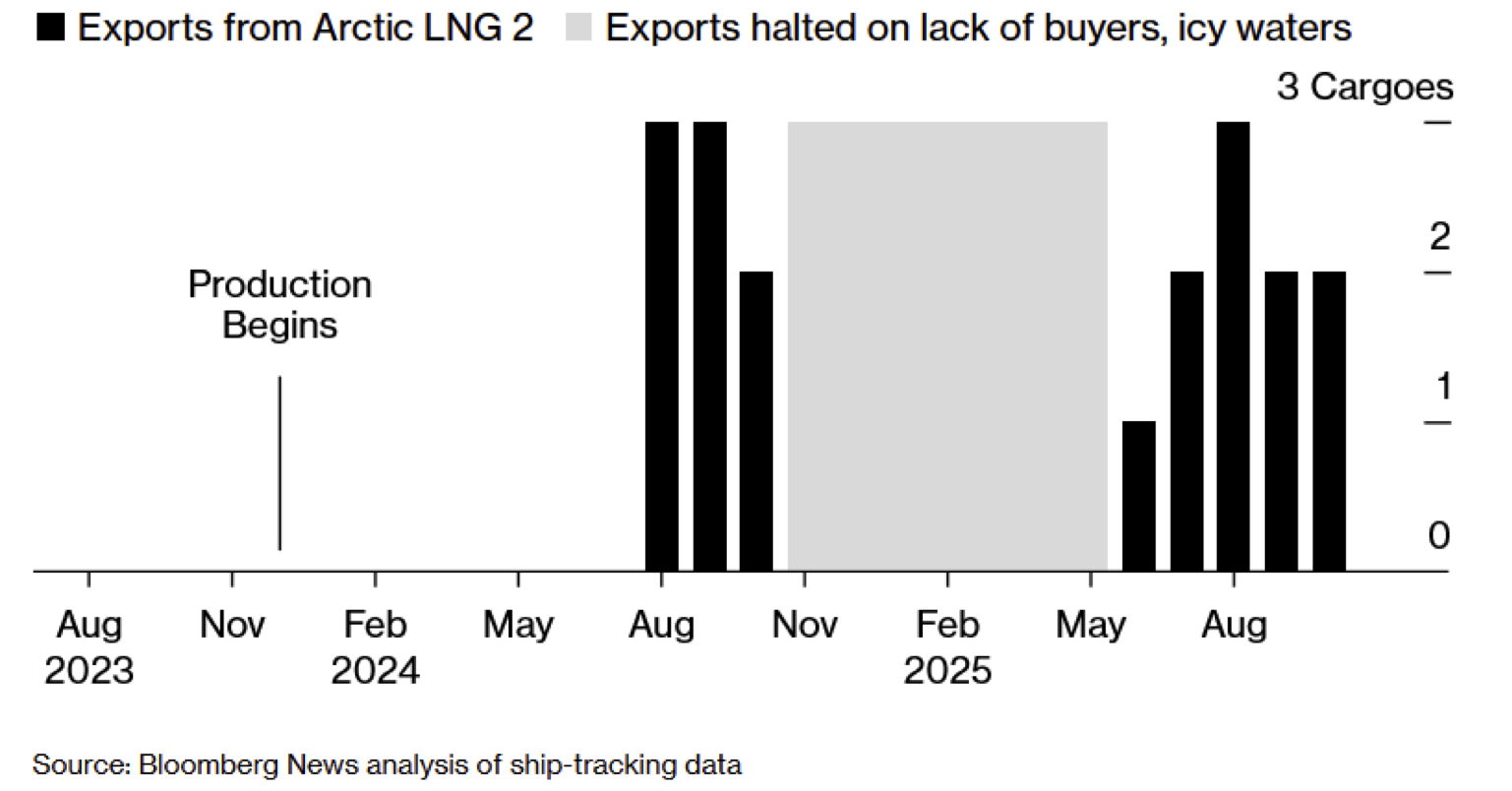 Wie bereits im Artikel „Power of Siberia 2 – Auswirkungen auf neue (US) LNG-Projekte und den LNG-Markt“ berichtet, legte Ende August 2025 ein Cargo, beladen im von den USA sanktionierten Exportprojekt Arctic LNG 2, in China/Beihai an und wurde entladen – damit wurde der Durchsetzungswille der Trump-Regierung betreffend Sanktionen erstmals auf die Probe gestellt. Dies vor dem Hintergrund, dass Novatek JPSC – als Betreiber der Arctic LNG 2 Anlage – bis dorthin Schwierigkeiten hatte einen Käufer zu finden obwohl eine Schattenflotte installiert wurde.